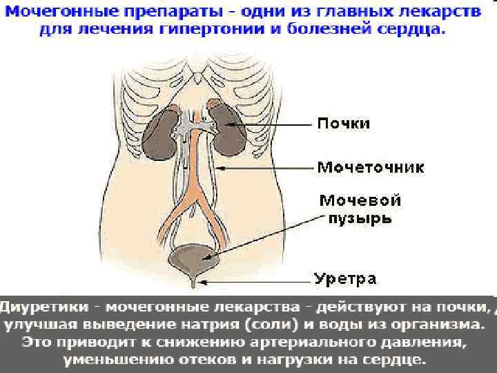 Мочегонные средства показаны при наличии отеков или выраженного застоя в легких. В последнем случае чаще всего применяют фуросемид. При лечении хронических отеков используют как отдельные мочегонные препараты, так и их комбинации, а также поочередное назначение разных по механизму действия средств.