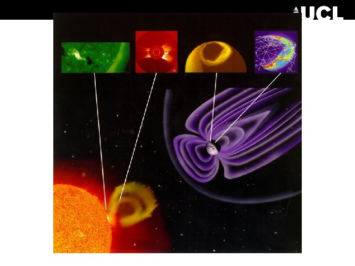 Space weather - timescales Earth’s magnetic field shields us from solar, galactic particles – but some penetrate; radiation belts always present Event from Sun reaches Earth (or planet at R AU) on 3 timescales: 1. 8 (x. R) minutes: high energy X- or - rays, radio noise 2. Minutes - hours (x. R), high energy charged particles 3. 2 -3 days (x. R), solar wind disturbances Effects on spacecraft of 1 and 2 are computer upsets; 3 can distort and energise magnetic environments