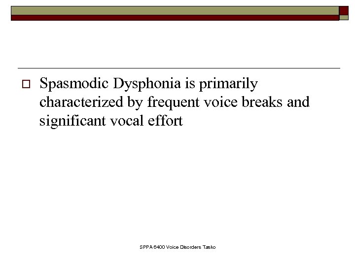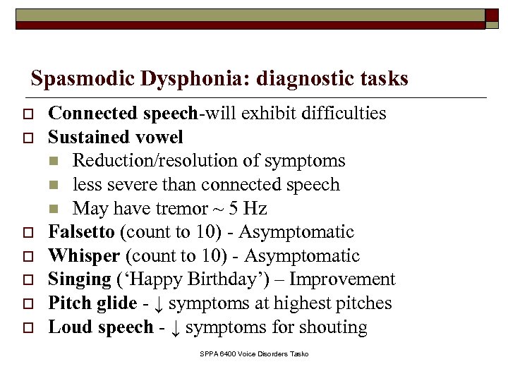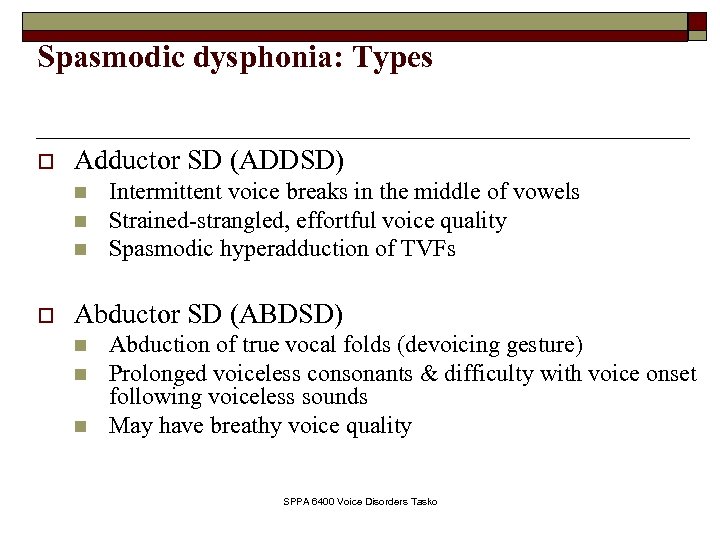Spasmodic Dysphonia SPPA 6400 Voice Disorders Tasko