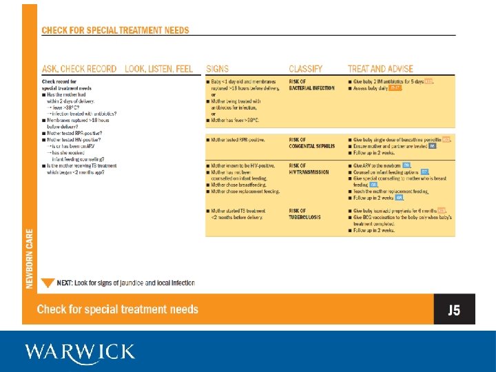Special care of preterm babies • Care of babies with signs of infection • Care of babies with jaundice • Babies with respiratory distress syndrome