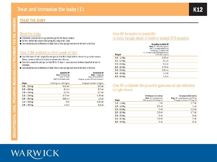 Neonatal infections • ‘rapid reductions in mortality are possible’ • ‘prevention of infection is mainly dependent on maternal health packages and programs such as antenatal care, hygienic care during childbirth and the postnatal period and early and exclusive breast feeding’