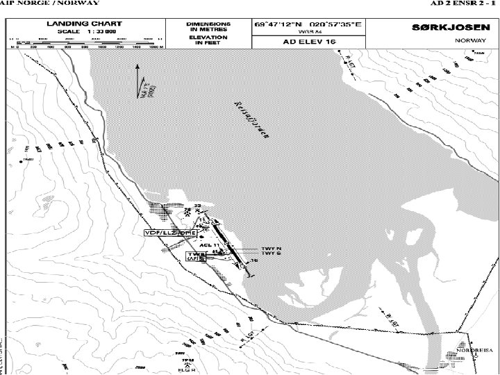 Norwegian STOL airports • Difficult terrain surroundings, • LLZ/DME or VOR/DME nav aids, i. e. no glidepath (too expensive or physically impossible), • non-precision step-down procedures using baro altimeters.