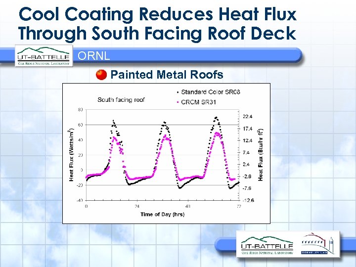 Cool Coating Reduces Heat Flux Through South Facing Roof Deck ORNL Painted Metal Roofs