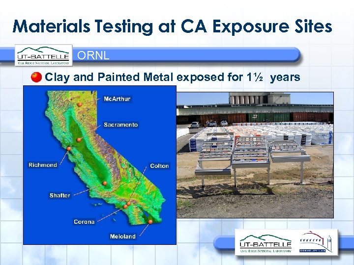 Materials Testing at CA Exposure Sites ORNL Clay and Painted Metal exposed for 1½ years