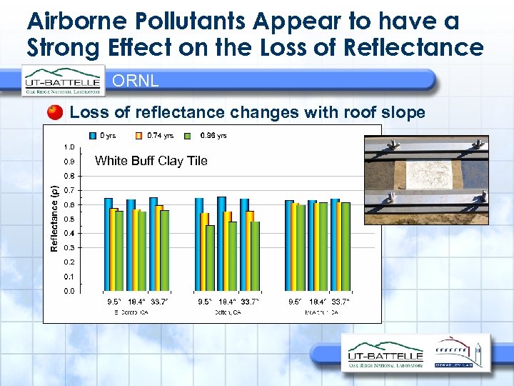 Airborne Pollutants Appear to have a Strong Effect on the Loss of Reflectance ORNL Loss of reflectance changes with roof slope White Buff Clay Tile