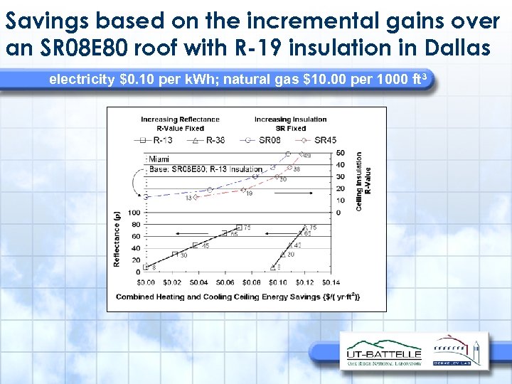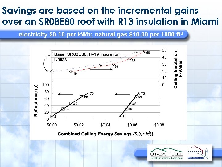 Savings are based on the incremental gains over an SR 08 E 80 roof with R 13 insulation in Miami electricity $0. 10 per k. Wh; natural gas $10. 00 per 1000 ft 3