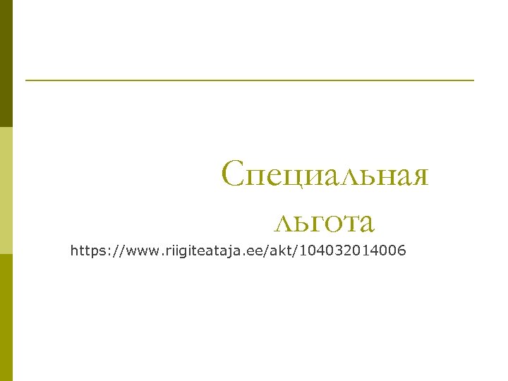 Специальная льгота https: //www. riigiteataja. ee/akt/104032014006