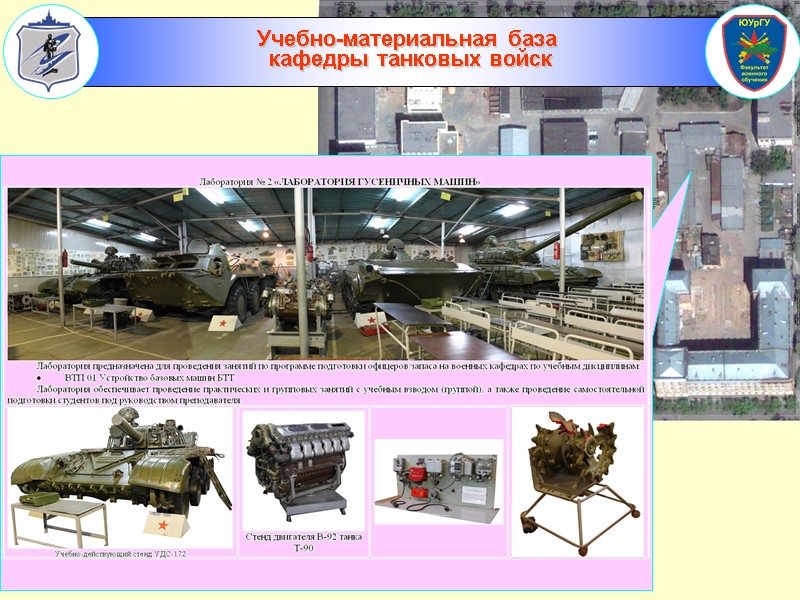 Кафедра танковых войск: ВУС 824 «Специалист по ремонту и хранению гусеничной бронетанковой техники и шасси специальных машин на ее базе » ВУС 825 «Специалист по ремонту и хранению колесной бронетанковой техники и шасси специальных машин на ее базе »