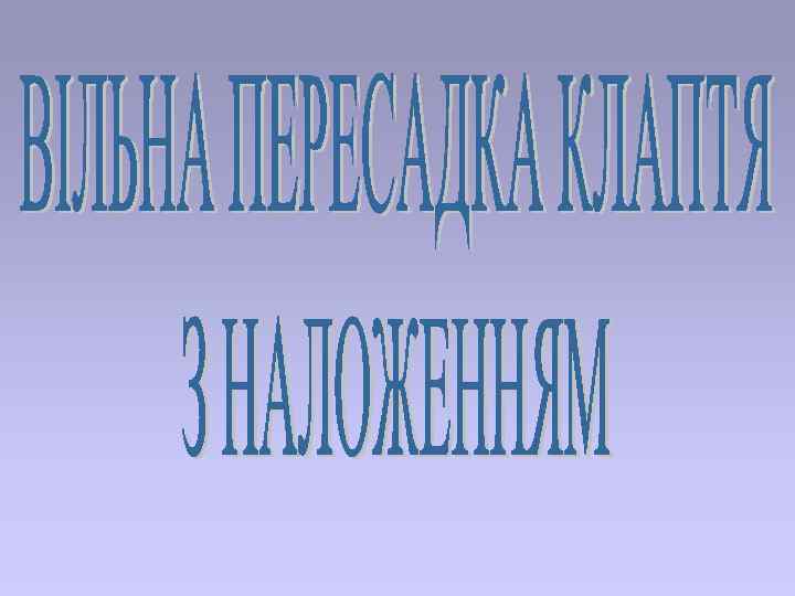 МІЖНАРОДНА ТРАНСПЛАНТОЛОГІЧНА ТЕРМІНОЛОГІЯ ВИДИ ТРАНСПЛАНТАЦІЇ Пересадка тканин у межах одного організму Пересадка тканин між організмами ідентичними у генетичному відношенні НАЗВА ВИДУ ПЕРЕСАДКИ Аутотрансплантація Ізотрансплантація Пересадка тканин між організмами одного виду Алотрансплантація Пересадка тканин між організмами різних видів Ксенотрансплантація Пересадка небіологічного субстрату Експлантація Пересадка тканин і небіологічного субстрату Комбінована пластика