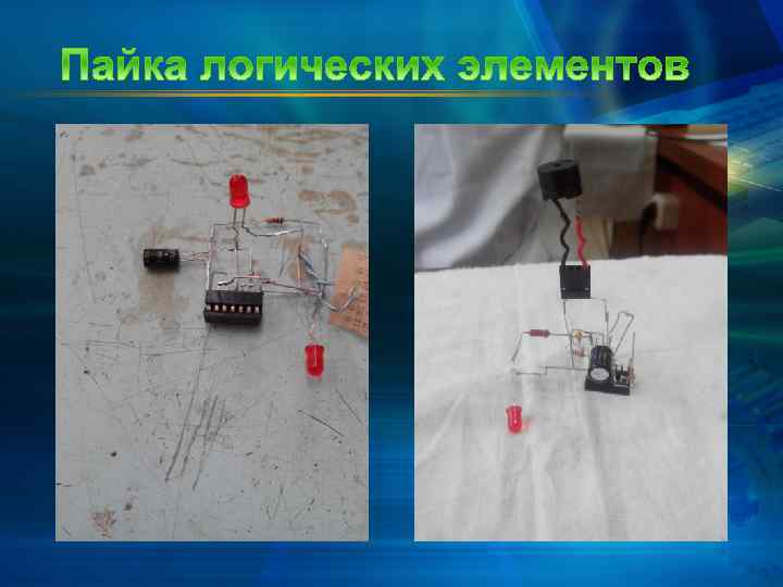 Электрорадиомонтажная практика Преподаватель: Лиходедов Владимир Васильевич Научились: • Выполнять пайку печатных плат • Выполнять пайку логических элементов • Производить выбор необходимого оборудования и инструментов • Выполнять лужение поверхностей и пайку различных соединений • Закреплять и расправлять провода на контактах • Выполнять пайку печатных плат Узнали: • Принцип организации рабочего места монтажника и выбора инструментов • Классификации припоев и флюсов • Условия получения качественной пайки • Требования к монтажу элементов • Способы подготовки проводов к монтажу
