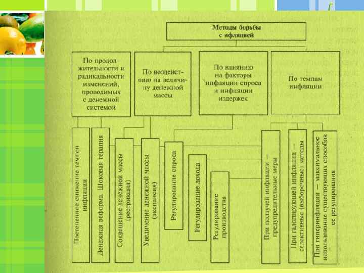АНТИИНФЛЯЦИОННАЯ ПОЛИТИКА • Для того чтобы инфляция не порождала в экономике комплекс негативных последствий, государство, отвлекая от инвестиций значительные средства, тратя время, энергию и ресурсы, вынуждено принимать определённые меры. • Государственная политика может либо приспособиться к инфляции * Например: Индексация доходов населения — полное или частичное возмещение потерь в доходах, вызванных ростом цен на потребительские товары и услуги. Соглашения с предпринимателями и профсоюзами о темпах роста цен и заработной платы.