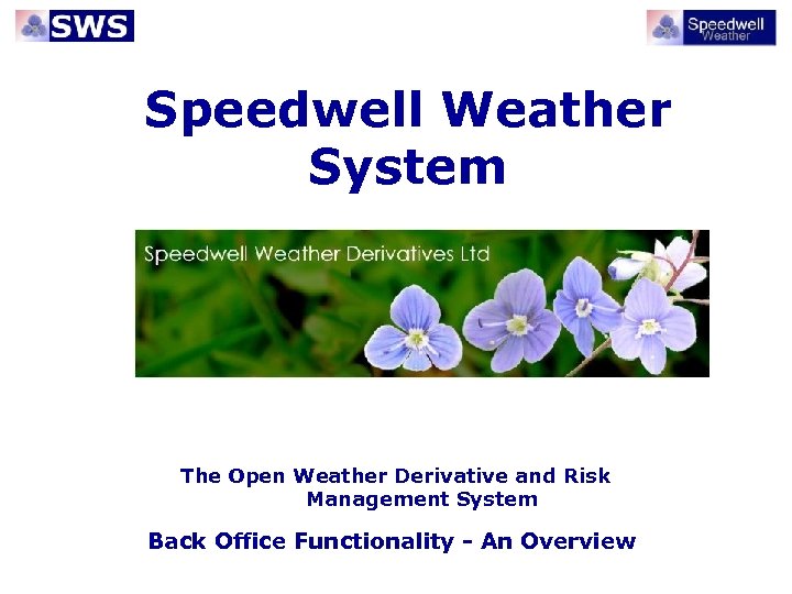 Speedwell Weather System The Open Weather Derivative and Risk Management System Back Office Functionality - An Overview