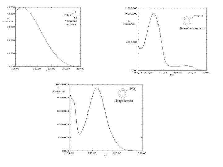 Электронная спектроскопия (УФ) –строго индивидуальная характеристика соединений. Применение: 1. Метод определения строения 2. Спектры зависят от условий измерений (фазового состояния, растворителя, р. Н, температуры), можно изучать внутримолекулярные взаимодействия, таутомерию, комплексообразования, процессы ионизации. 3. I~C, можно определить степень чистоты, С веществ в растворе, исследовать кинетику реакции.