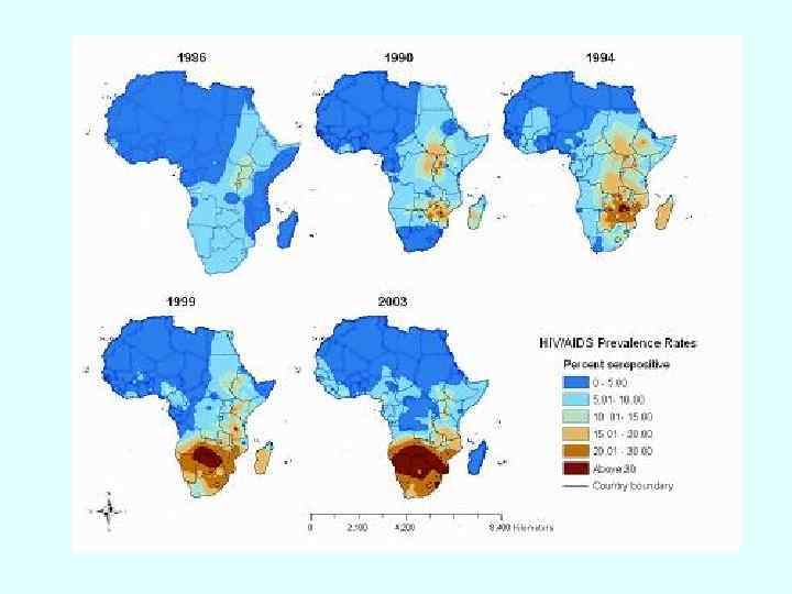 Катастрофическая акция СПИДа на продолжительность жизни в пяти странах Африки, 1970– 2010 70 65 60 55 50 45 Бoтсвана Южная Африка Свазиланд 40 35 30 25 Замбия Зимбабве 20 1970– 1975 1980– 1985 1990– 1995 2000– 2005 1975– 1980 1985– 1990 1995– 2000 2005– 2010 Продолжительносить жизни (годы) Source: United Nations Population Division (2004). World Population Prospects: The 2004 Revision, database. 4. 1
