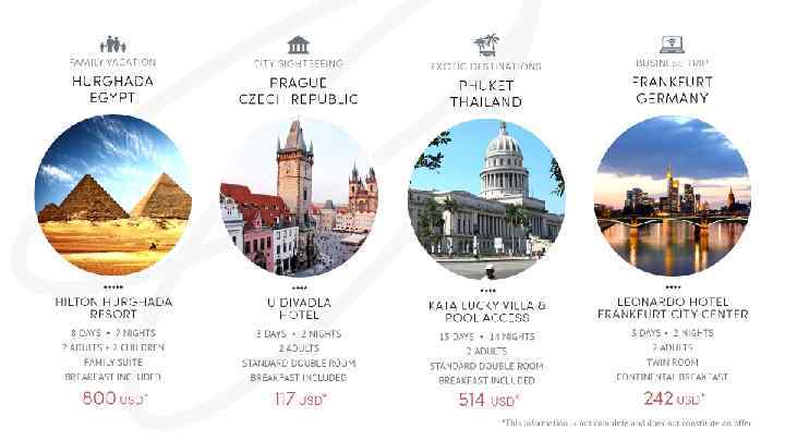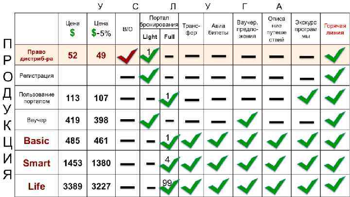 БЕСПЛАТНАЯ РЕГИСТРАЦИЯ Доступ к бронированию номеров по стандартным ценам и услуги круглосуточной горячей линии во время путешествия. ПЛАТА ЗА ПОЛЬЗОВАНИЕ ПОРТАЛОМ На один год - Бронирование номеров в отеле со скидкой 18 % от стандартных цен Услуги круглосуточной горячей линии во время путешествия - Билеты на местные программы. 113 USD / год ВАУЧЕР ТУРИСТИЧЕСКИЕ ПРОДУКТЫ Туристический ваучер действителен в течение одного года и может использоваться для покупки предложений по ваучерам с фиксированной стоимостью , а также предоставляет доступ к: -услугам круглосуточной горячей линии во время путешествия - покупке билетов на местные программы 419 USD, с четвертого ваучера — 372 USD