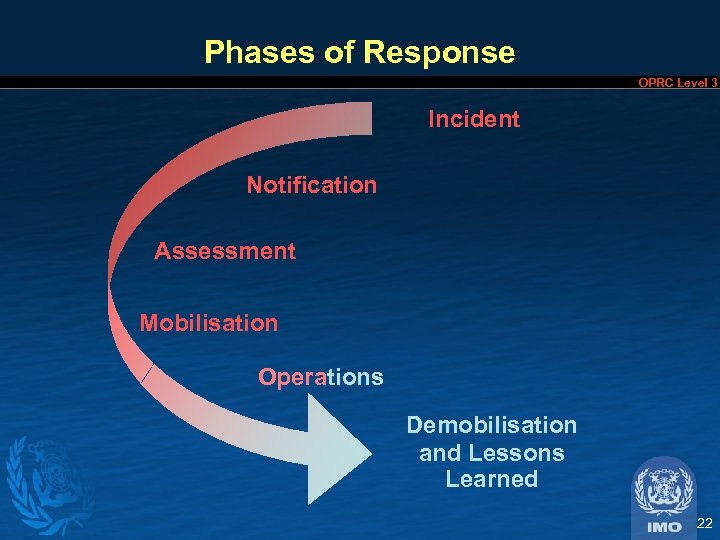 Phases of Response OPRC Level 3 Incident Notification Assessment Mobilisation Operations Demobilisation and Lessons Learned 22