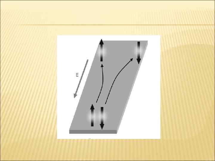На электроны с противоположным спином действуют силы, отклоняющие их в противоположных направлениях, что приводит к накоплению спинов на краях образца в отсутствие внешнего магнитного поля. Спиновый эффект Холла Эффект Холла