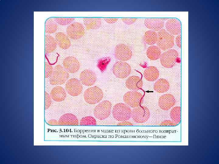 Лабораторная диагностика возвратных тифов • На высоте приступа – микроскопия крови (толстая капля, висячая капля) • Биопроба на морской свинке – болезнь наступает при заражении боррелиями эндемическго тифа • В межприступный период – серодиагностика: ИФА, непрямая РИФ