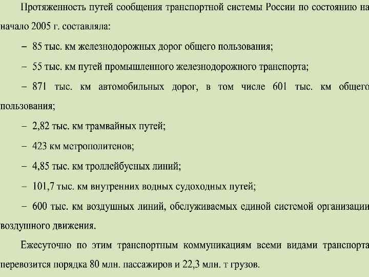 Транспортные коридоры На направлении Запад Восток намечены следующие транспортные коридоры: Граница с Белоруссией – Москва – Нижний Новгород (международный панъевропейский транспортный коридор № 2, включающий железнодорожные и автомобильные магистрали) – Пермь – Екатеринбург (с последующим выходом по Транссибирской железнодорожной магистрали к морским портам России на Дальнем Востоке и в странах Юго Восточной Азии). Транспортный коридор № 2, беря начало в Германии (Берлин), проходит по территории Польши (Варшава), пересекает границы СНГ в районе пограничного пункта Брест, далее следует по территории Белоруссии (Минск) и России (Смоленск), достигает Центрального экономического района (Москва) с предложенным продлением на Нижний Новгород, Екатеринбург и далее на восток. По транспортным магистралям этого коридора осуществляется основная часть международных грузовых железнодорожных и автомобильных перевозок на направлении Запад – Восток. Железные дороги здесь, как правило, двухпутные, электрифицированные. В районе пограничной перевалочной станции Брест при пересечении границы производится смена колесных пар, что вызвано различием в ширине российской и европейской железнодорожной колеи. Вдоль железной дороги проходит федеральная автомобильная дорога общего пользования Ml (ЕЗО – по европейской классификации) Минск – Москва с твердым асфальтобетонным покрытием шириной 16 25 м, числом полос движения 3 6, интенсивностью движения 3000 20000 автомобилей в сутки. В полосе российской части коридора № 2 находятся аэропорты Московского транспортного узла, Нижнего Новгорода, а также действующие и сооружаемые терминальные комплексы в Смоленске, Вязьме, Москве и Московской обл. , Владимире и Нижнем Новгороде.