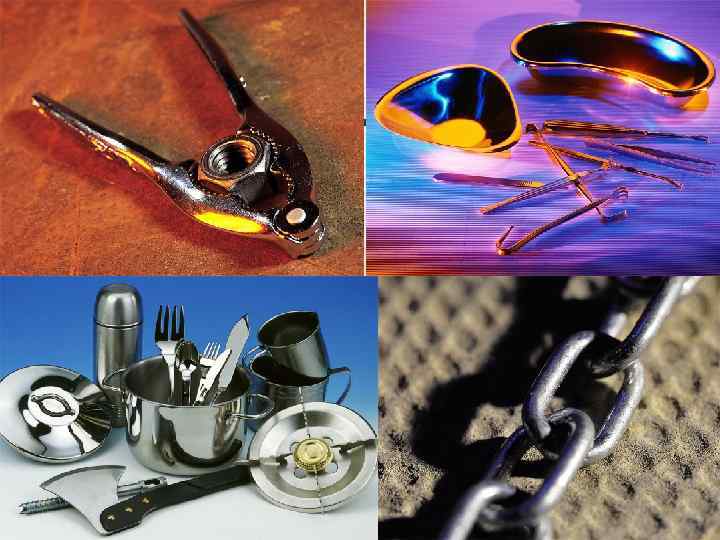 Свойства сплавов Химическая связь в сплавах – металлическая, поэтому они обладают теми же физическими свойствами, что и металлы: металлическим блеском, пластичностью, электро- и теплопроводностью и др. Но эти свойства несколько изменяются в более полезные для человека свойства.