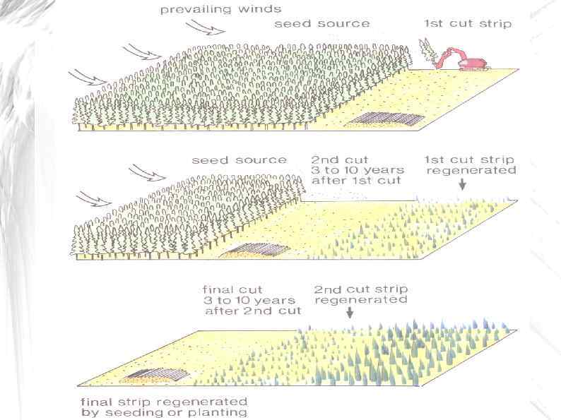 Основными мероприятиями по улучшению практики сплошных рубок нужно считать: уменьшение площади лесосек; запрещение бессистемной валки и трелевки; совершенствование технологии и машин; применение мер содействия естественному лесовозобновлению; улучшение практики очистки лесосек.