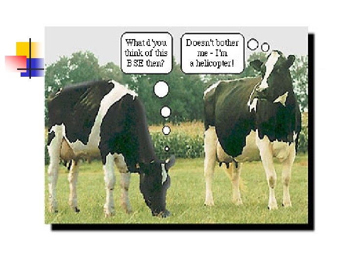 BSE History in UK n n n 1985: first cases of BSE 1988: June BSE made notifiable July Ruminant feed banned August Compulsory slaughter and destruction of suspect cattle 1989 February Southwood report November Ban of sale of bovine offal for human consumption