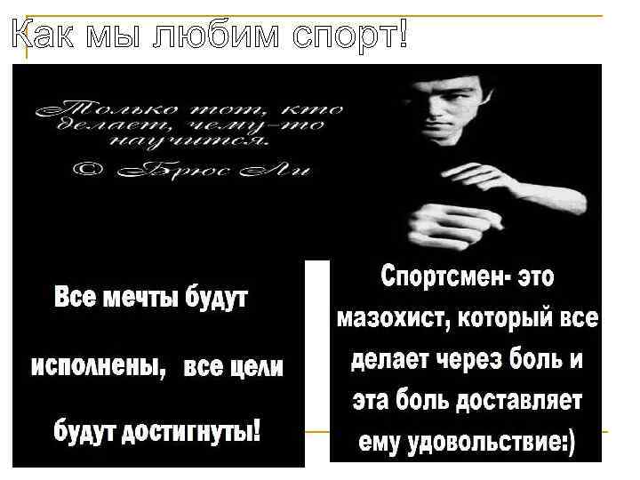 n n Спорт (англ. sport, сокращение от первоначального старофранц. desport— «игра» , «развлечение» ) — организованная по определённым правилам деятельность людей, состоящая в сопоставлении их физических или интеллектуальны способностей, а также подготовка к этой деятельности и межличностные отношения, возникающие в её процессе. Спорт представляет собой специфический род физической и интеллектуальной активности, совершаемой с цельюсоревнования, а также целенаправленной подготовки к ним путём разминки, тренировки. В сочетании с отдыхом, стремлением постепенного улучшения физического здоровья, повышения уровня интеллекта, получения морального удовлетворения, стремления к совершенству, улучшению личных, групповых и абсолютных рекордов, славе, улучшения собственных физических возможностей и навыков, спорт предназначен для совершенствования физико-психических характеристик человека. Спорт — составная часть физической культуры. Это собственно соревновательная деятельность и подготовка к ней. В нём ярко проявляется стремление к победе, достижению высоких результатов, мобилизация физических, психических и нравственных качеств человека. Спорт необходим для того, чтобы влиять на общество. Массовый спорт даёт возможность миллионам людей совершенствовать свои физические качества и двигательные возможности, укреплять здоровье и продлевать творческое долголетие.