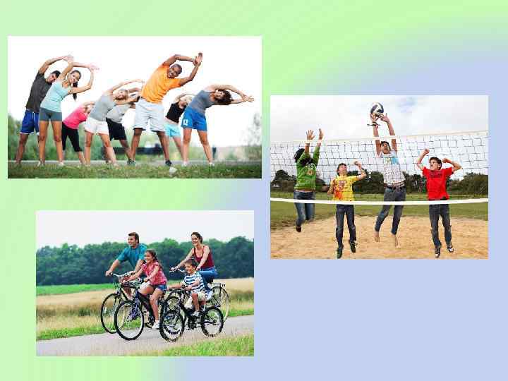 Зима Весна Лето Осень -катание на лыжах; -спортивное ориентирование; -катание на коньках; -массовые забеги -скандинавская ходьба; -массовые забеги; -городошный спорт -утренняя зарядка; -катание на роликах; -катание на велосипедах; -спортивное ориентирование; -бадминтон; -скандинавская ходьба; -йога; -волейбол; -баскетбол -массовые забеги; -скандинавская ходьба; -катание на велосипедах; -городошный спорт