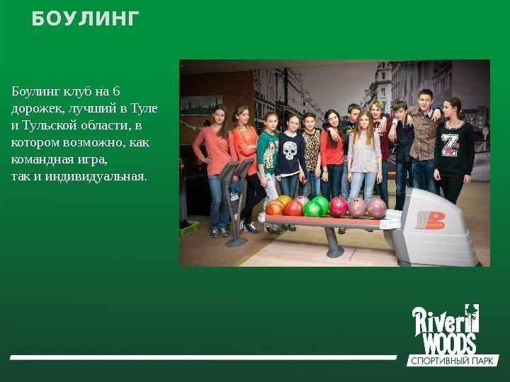 БОУЛИНГ Боулинг клуб на 6 дорожек, лучший в Туле и Тульской области, в котором возможно, как командная игра, так и индивидуальная.