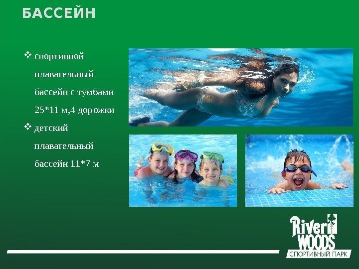 Описание презентации Спортивный парк «RIVERWOODS» расположен в нескольких минутах по слайдам