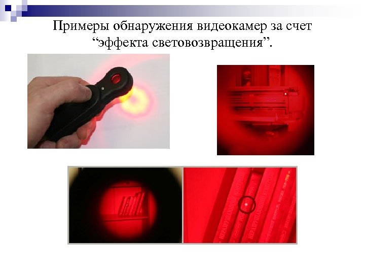 Примеры обнаружения видеокамер за счет “эффекта световозвращения”.