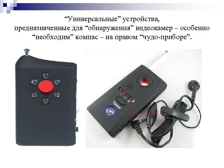 “Универсальные” устройства, предназначенные для “обнаружения” видеокамер – особенно “необходим” компас – на правом “чудо-приборе”.