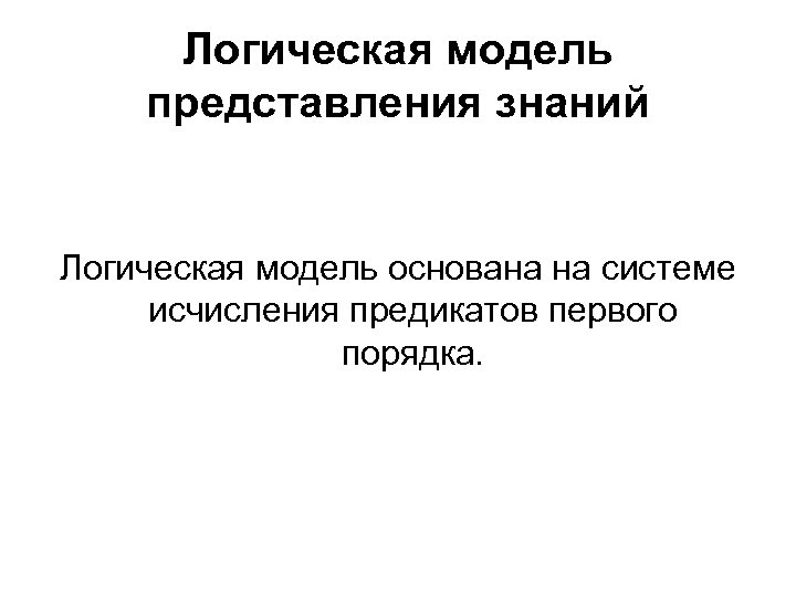 Логическая модель представления знаний Логическая модель основана на системе исчисления предикатов первого порядка.