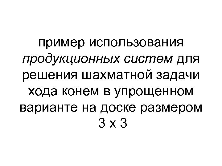 пример использования продукционных систем для решения шахматной задачи хода конем в упрощенном варианте на доске размером 3 x 3