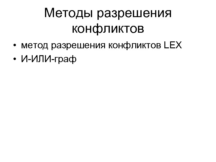 Методы разрешения конфликтов • метод разрешения конфликтов LEX • И-ИЛИ-граф