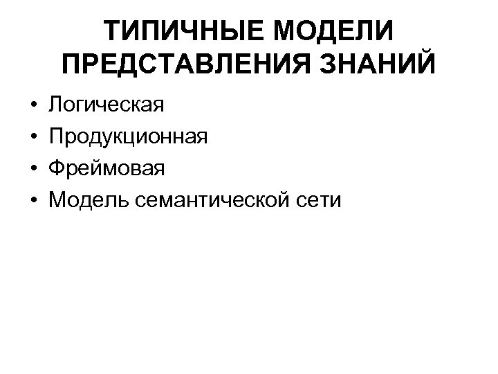 ТИПИЧНЫЕ МОДЕЛИ ПРЕДСТАВЛЕНИЯ ЗНАНИЙ • • Логическая Продукционная Фреймовая Модель семантической сети