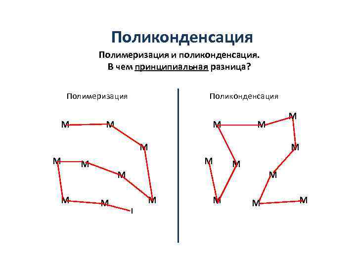 Поликонденсация Полимеризация и поликонденсация. В чем принципиальная разница? Полимеризация М Поликонденсация М М М I М М М
