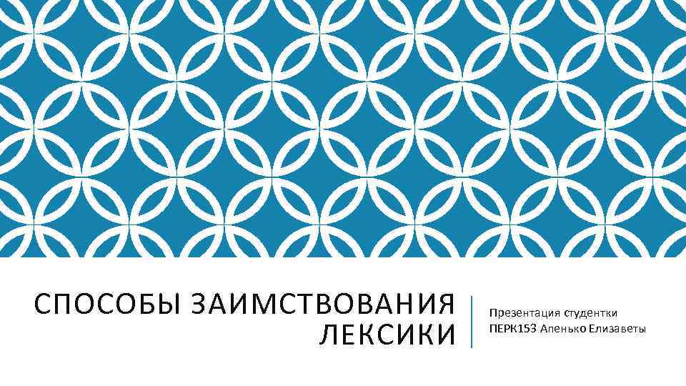 СПОСОБЫ ЗАИМСТВОВАНИЯ ЛЕКСИКИ Презентация студентки ПЕРК 153 Апенько Елизаветы