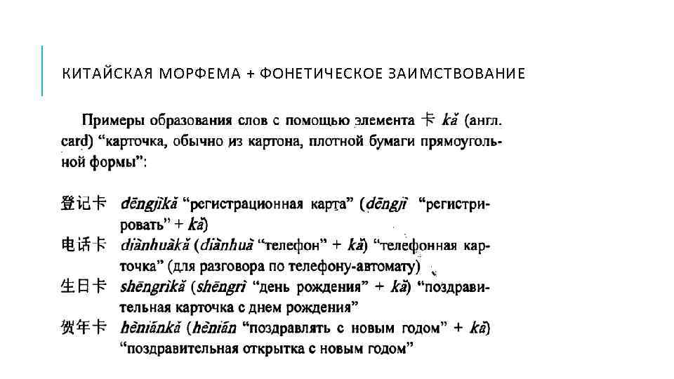 КИТАЙСКАЯ МОРФЕМА + ФОНЕТИЧЕСКОЕ ЗАИМСТВОВАНИЕ
