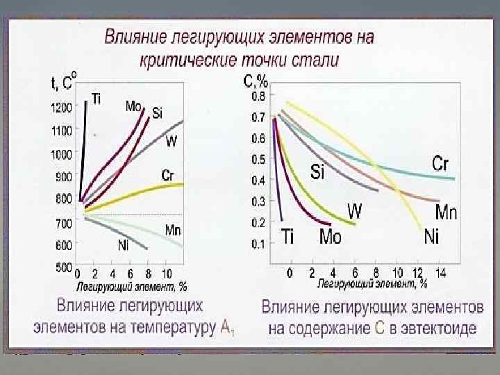 Ni, Mn Cr, W, Mo, Ti, V, Si Влияние легирующих элементов на полиморфные превращения в железе