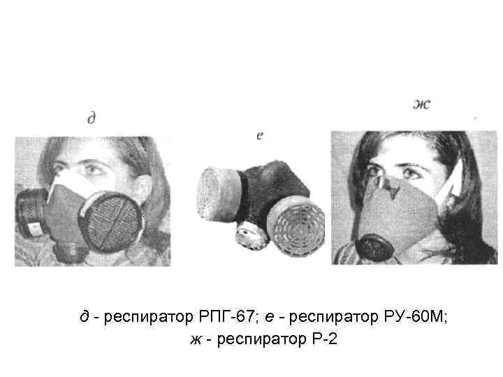 д респиратор РПГ 67; е - респиратор РУ 60 М; ж респиратор Р 2