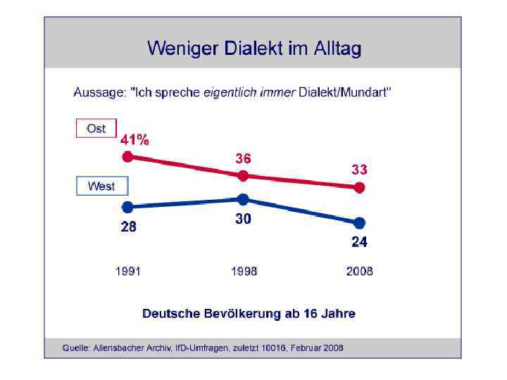 • Deutsche Sprache in Deutschland, Österreich und in der Schweiz • Standardsprache – Umgangsprache - Dialekt • Unterscheidung Standardsprache – Dialekt: • Politische Abgrenzung; Stammesversion; gegenseitige Verständlichkeit; • Zukunftsaussichten • Verbreitung deutscher Dialekte vor dem zweiten Weltkrieg und heute.