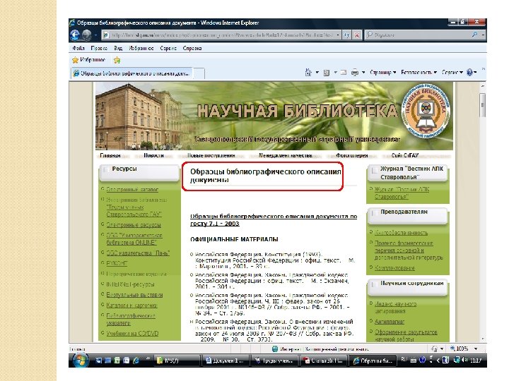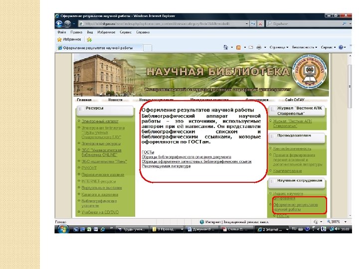 Сайт Научной библиотеки http: //bibl. stgau. ru