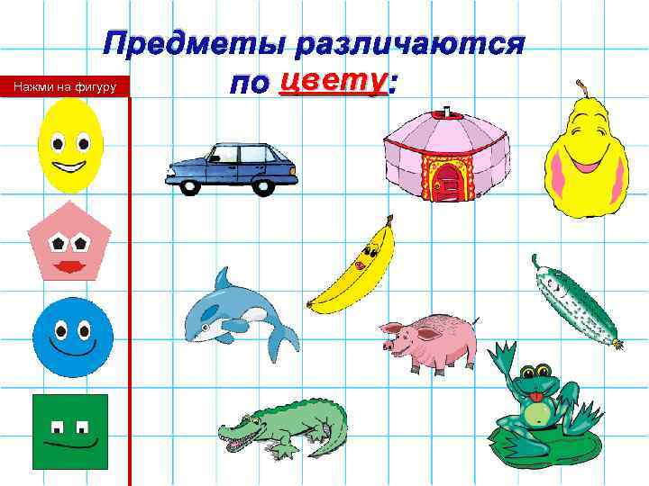 Предметы различаются по цвету : Нажми на фигуру