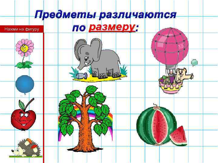 Предметы различаются по размеру : Нажми на фигуру
