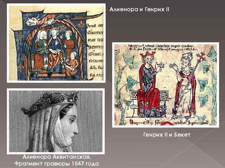 Алиенора и Генрих II и Бекет Алиенора Аквитанская. Фрагмент гравюры 1547 года