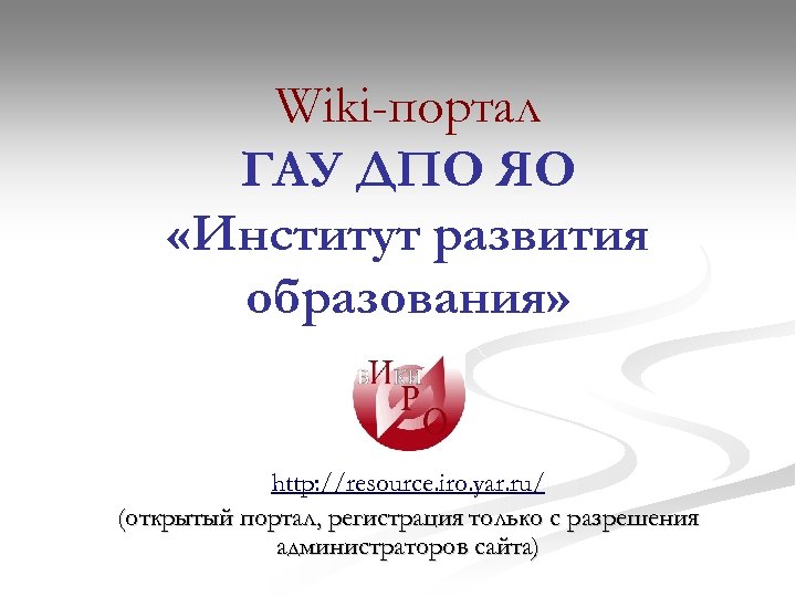 Wiki-портал ГАУ ДПО ЯО «Институт развития образования» http: //resource. iro. yar. ru/ (открытый портал, регистрация только с разрешения администраторов сайта)