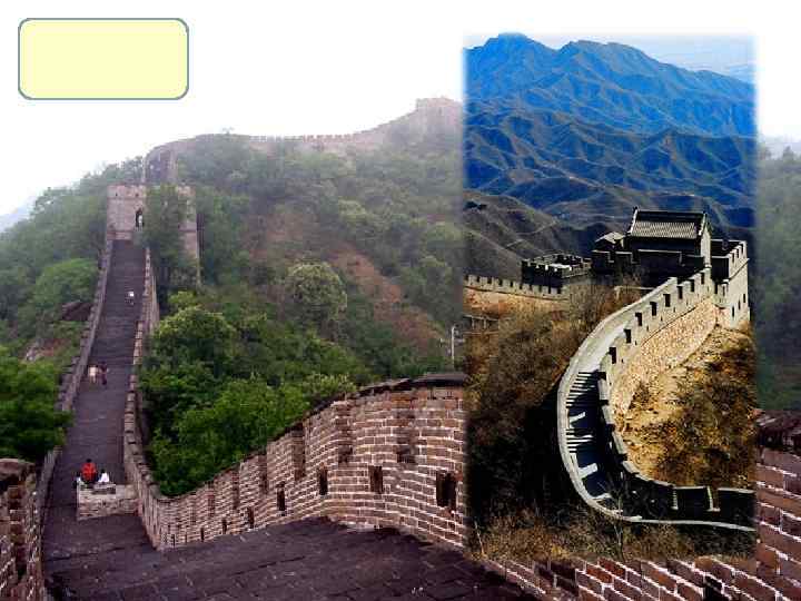 Великая Китайская стена - древнее оборонительное сооружение - является символом Китая. Первые участки стены воздвигнуты в 4— 3 вв. до н. э. Размеры Великой Китайской стены столь поразительны, что ее назвали восьмым чудом света. Протяжённость стены называют от 4, 5 до 6 тысяч км, толщина несколько метров (в среднем 5 метров), высота 6 -10 метров. В течение 2100 лет ее строили миллионы солдат и рабочих, и бессчётные тысячи сложили на этой стройке голову.
