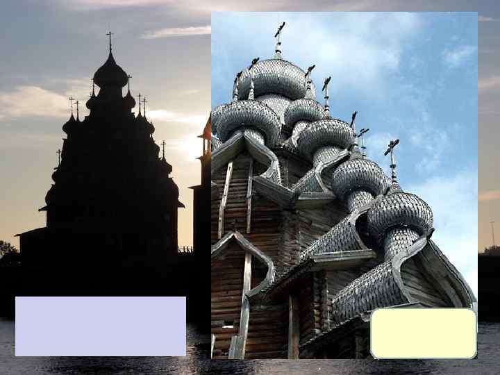 Кижи - один из тысячи шестисот пятидесяти островов Онежского озера. Когда-то в далекие языческие времена карелы так называли место для игр, игрище. Здесь на маленьком островке стоят удивительные, неповторимые создания архитектуры. Деревянные церкви и избы, срубленные русскими плотниками, стали шедеврами мирового зодчества. Ансамбль древнего погоста на острове Кижи состоит из трех зданий: главной Преображенской церкви, меньшей Покровской и стоящей между ними колокольни. Легендарный строитель Преображенской церкви, закончив работу, бросил свой топор в Онежское озеро и сказал: 'Поставил эту церковь мастер Нестор, не было, нет и не будет такой'.