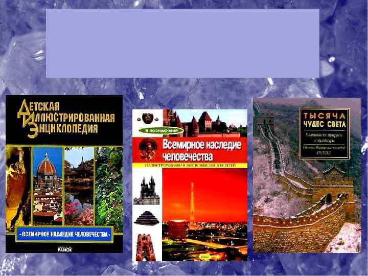 Среди объектов Всемирного природного наследия – самые высокие горные вершины планеты (Эверест, Килиманджаро), самые большие водопады (Анхель, Виктория, Игуасу), самые глубокие озера (Байкал, Малави), самые грандиозные пещеры (Карлсбадская, Мамонтова, Саравак), самые активные и коварные вулканы (Килауэа на Гавайях и Кракатау в Индонезии), самый крупный песчаный остров (Фрейзер, близ восточной Австралии), самое значительное скопление коралловых островов и рифов (австралийский Большой Барьерный риф), самый бездонный каньон (Гранд-Каньон реки Колорадо). Это также целый ряд других шедевров природы, по отношению к которым можно также смело применять слова «самый-самый» .
